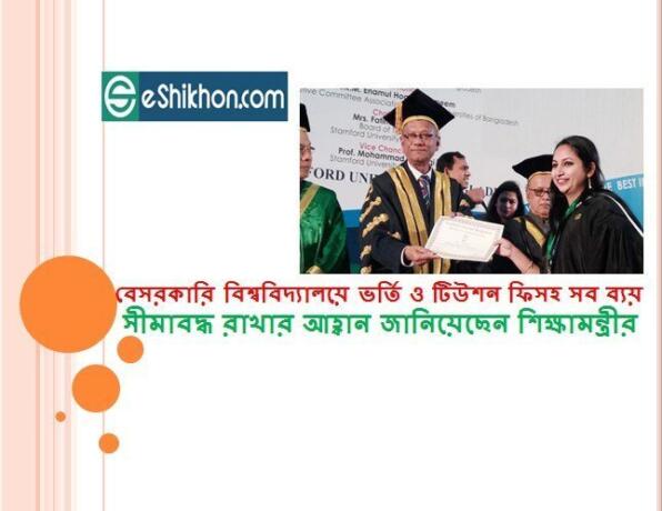 বেসরকারি বিশ্ববিদ্যালয়ে ভর্তি ও টিউশন ফিসহ সব ব্যয় সীমাবদ্ধ রাখার আহ্বান জানিয়েছেন শিক্ষামন্ত্রীর