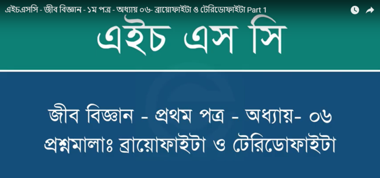 এইচএসসি – জীব বিজ্ঞান – ১ম পত্র – অধ্যায় ০৬- ব্রায়োফাইটা ও টেরিডোফাইটা Part 1