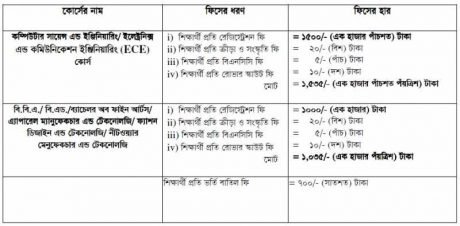 চূড়ান্ত ভর্তির জন্য কোর্সওয়ারী রেজিস্ট্রেশন ফিসের হার: