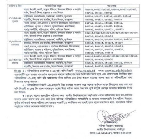 জাতীয় বিশ্ববিদ্যালয়ের ২০১৭ সালের অনার্স তৃতীয় বর্ষ পরীক্ষার সময়সূচী