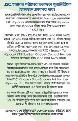 জেএসসি ও জেডিসি পরীক্ষার ফলাফল পুনঃনিরীক্ষণ এর ফলাফল দেখার নিয়মঃ