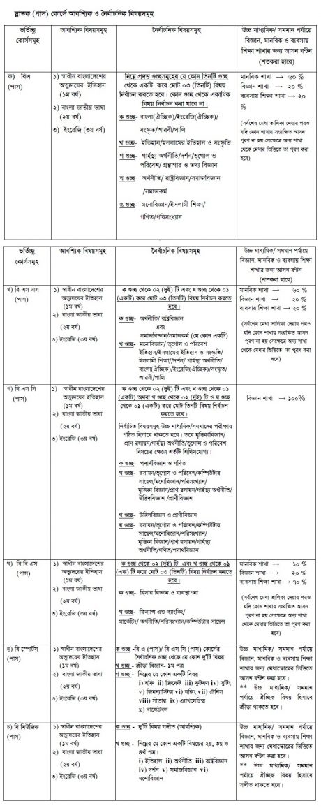 ডিগ্রি পাস কোর্সে ২০১৭-১৮ শিক্ষাবর্ষের ভর্তি সংক্রান্ত বিস্তারিত তথ্য