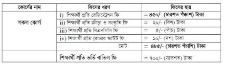 চূড়ান্ত ভর্তির জন্য কোর্সওয়ারী রেজিস্ট্রেশন ফিসের হার: