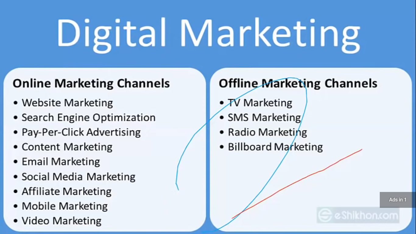 ডিজিটাল মার্কেটিং, এসইও, সোশ্যাল মিডিয়া মার্কেটিং, এফিলিয়েট মার্কেটিং, ইউটিউব মার্কেটিং।