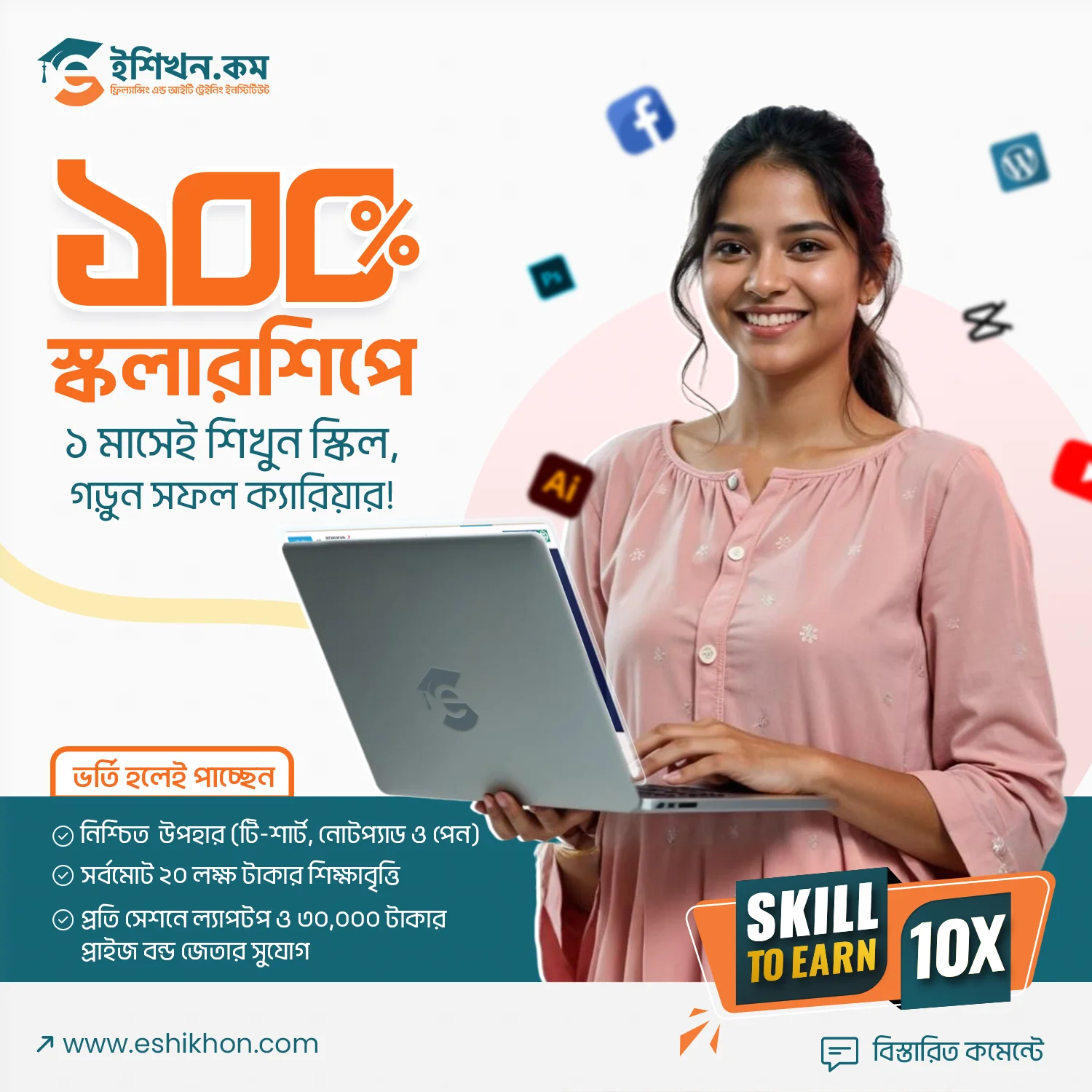 ইশিখন দিচ্ছে সম্পূর্ন ফ্রিতে ৩০+ স্কিল ডেভলপমেন্টের সুযোগ। সঠিক স্কিল দিয়ে ক্যারিয়ার শুরু করুন — মাত্র ৯৯০ টাকা রেজিস্ট্রেশন ফিতে!